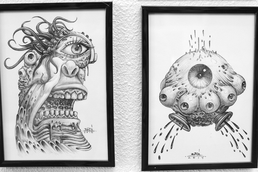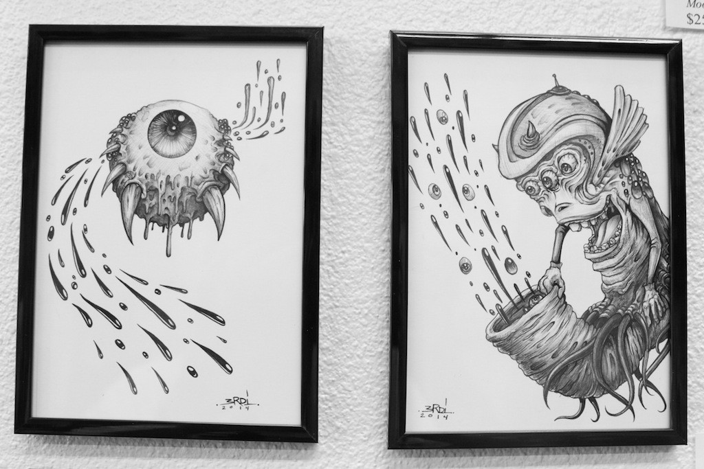 Dec. 6th, 2014. GCS clothing store and art gallery presents a little show we like to call GCS All Stars. NO theme, just a show made up of artists that are familiar to our gallery walls. Artists included in this show were Free Humanity, Nick Macaulay, DES, Jess Johnson, Jordan Yescas, Edgar Zamorano, Marcos Camacho a.k.a Nerd Bird, Andre Sandoval, Steady Jenny, GERMIZM, Dino Perez and the works of Ivan Vega a.k.a 3rdi that were still available from the NOV art show. We’re still getting used to our new space and the crowds are steadily finding us in our new place.