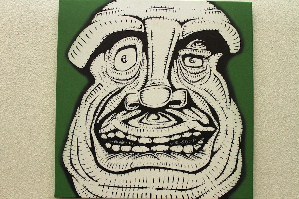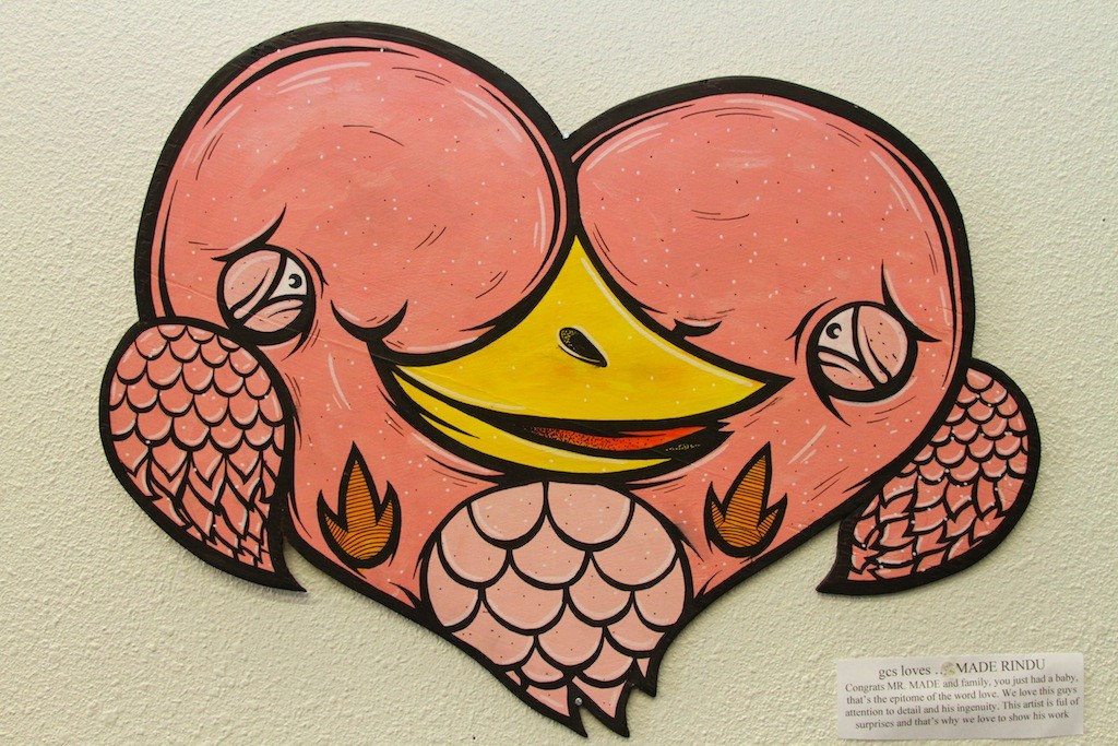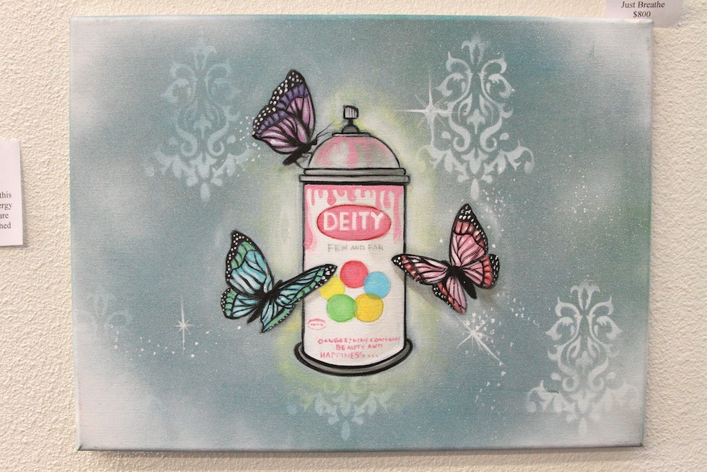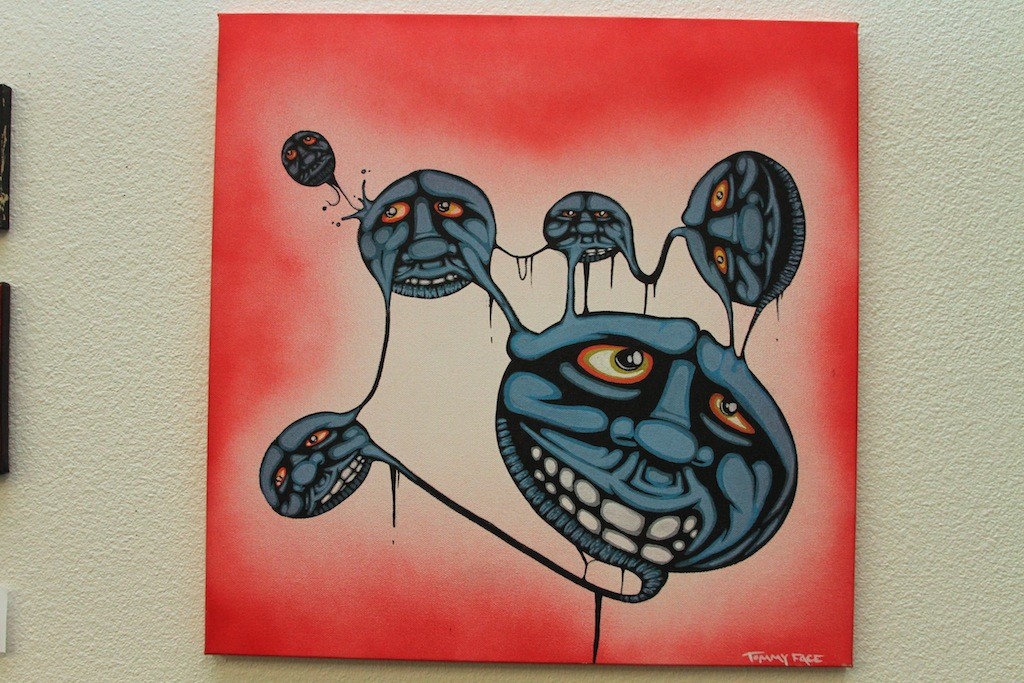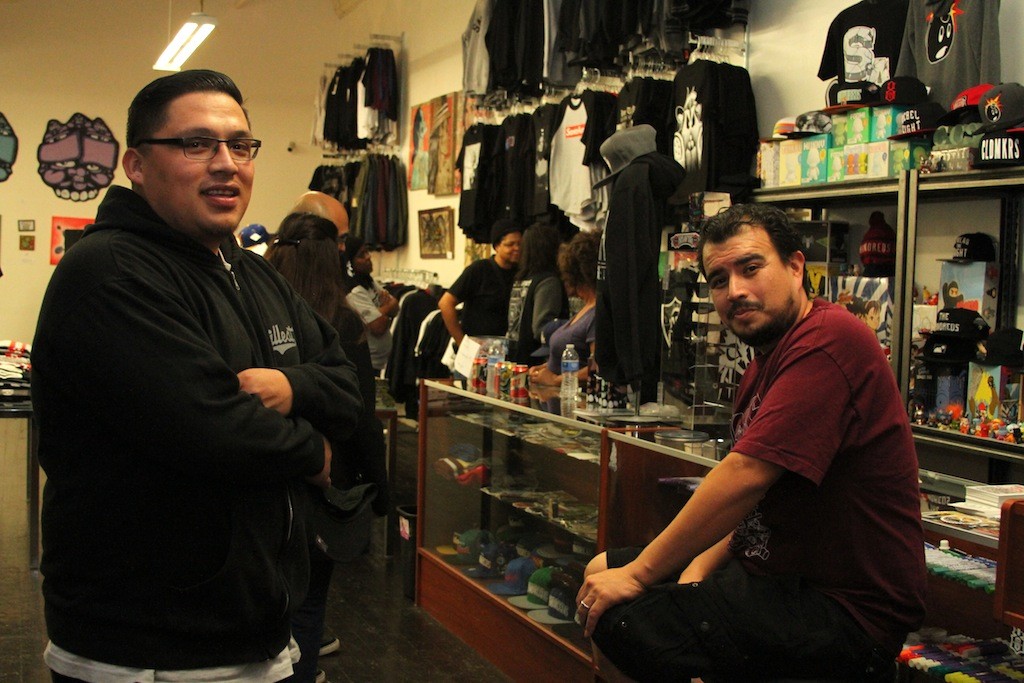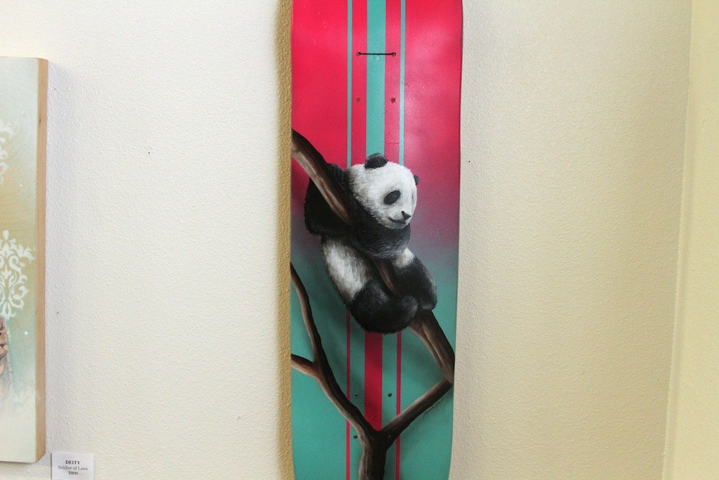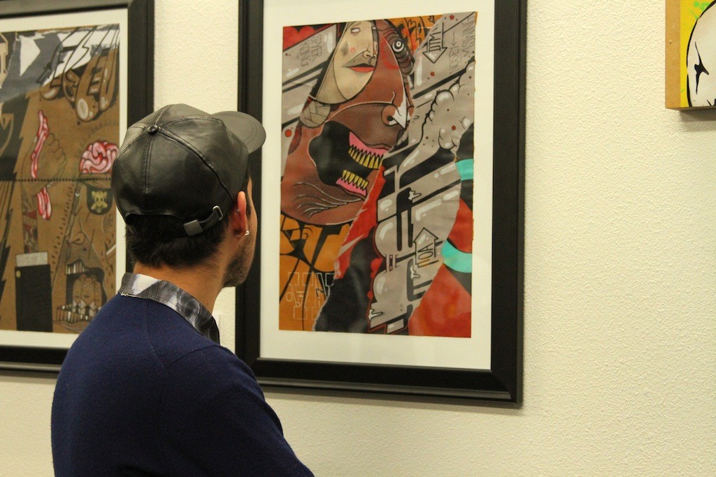 FEB 7th, 2015… GCS was happy to host the second edition of the “All Our Love” art show that takes place during february’s art walk. This specially selected group of artists represented some of what GCS loves and holds most dear. We thank all the artists that were involved in the show as well as the crowds that came in though out the night. Big thanks to Scarub from Living Legends for his in store performance, which we covered in a previous post. DJ’s Real and AB were on the decks all night long. DJ AB had a HUG STATION out in front of the shop for the night promoting peace in the hood. And DEITY and Kimberly Duran finished up their latest pieces steps away from our front door.