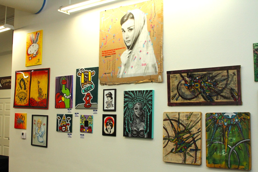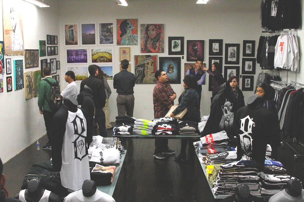 Dec. 6th, 2014. GCS clothing store and art gallery presents a little show we like to call GCS All Stars. NO theme, just a show made up of artists that are familiar to our gallery walls. Artists included in this show were Free Humanity, Nick Macaulay, DES, Jess Johnson, Jordan Yescas, Edgar Zamorano, Marcos Camacho a.k.a Nerd Bird, Andre Sandoval, Steady Jenny, GERMIZM, Dino Perez and the works of Ivan Vega a.k.a 3rdi that were still available from the NOV art show. We’re still getting used to our new space and the crowds are steadily finding us in our new place.