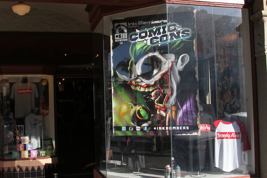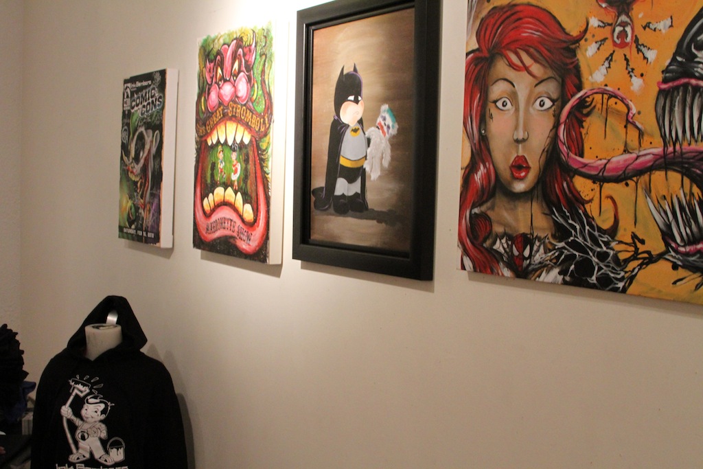 Today we look back at the second time the Ink Bombers curated an art show in our Broadway gallery. Entitled “Comic Cons”, the art show focused on the darker side of the characters that we all grew up with. Great art show, great line up of talent. The Ink Bombers always go hard.