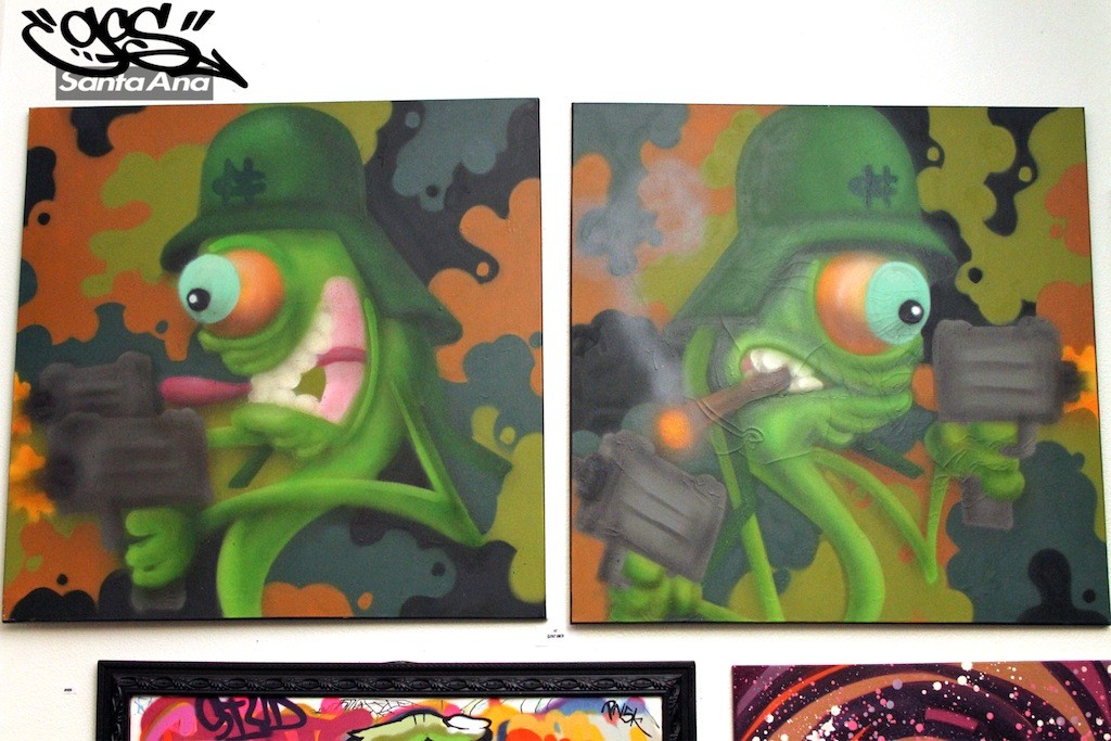 OCT 3rd, 2015- The Orange Crush’d Art Show came to The GCS Clothing Store and Art Gallery for the October Art Walk, 2015. XPLODE CBS curated this show that brought out most of the biggest hitters in OC graff. This was the biggest night at the new GCS Santa Ana location as hundreds of visitors, artists and art buyers and supporters came through to witness the show for themselves. Here is a photo run-down of the night. The show will hang until OCT 23rd, so come by and check it out while you can.