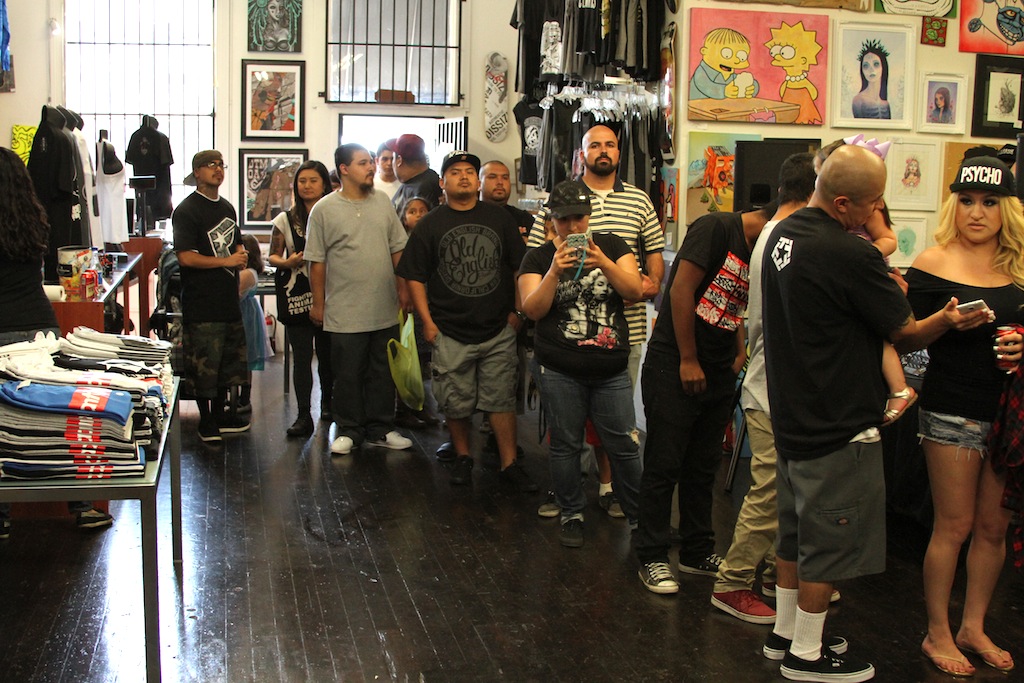 April 12th, 2015. This wasn’t your typical lazy sunday afternoon at GCS santa ana. Today we had the honor of hosting Sick Jacken of The Psycho Realm and world famous artist Big Sleeps for an artist signing and exclusive product release. Chosen to be one of two locations for this release, the GCS customer base came out in full force to snatch up the new merch and say what up to the guys. Kenos One came through to do some psychos inspired body art to add to the ambiance. Our doors will always open to Jack and all The Psycho Realm family, we can’t wait to do this again soon.