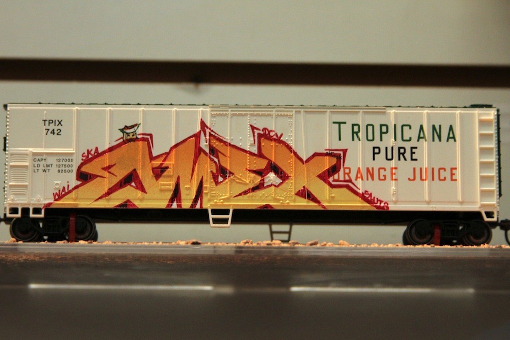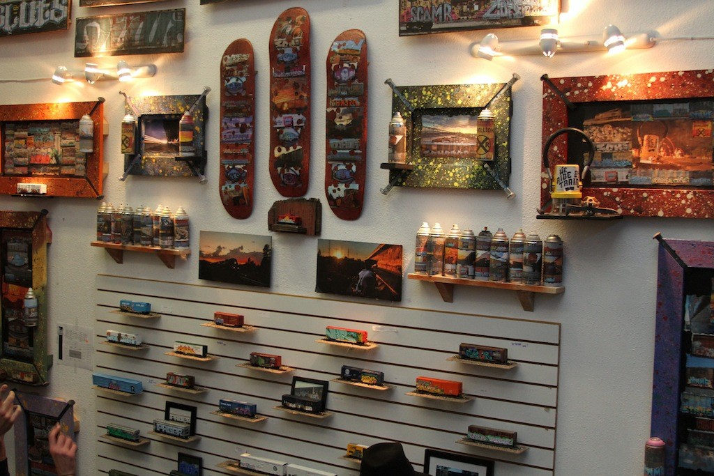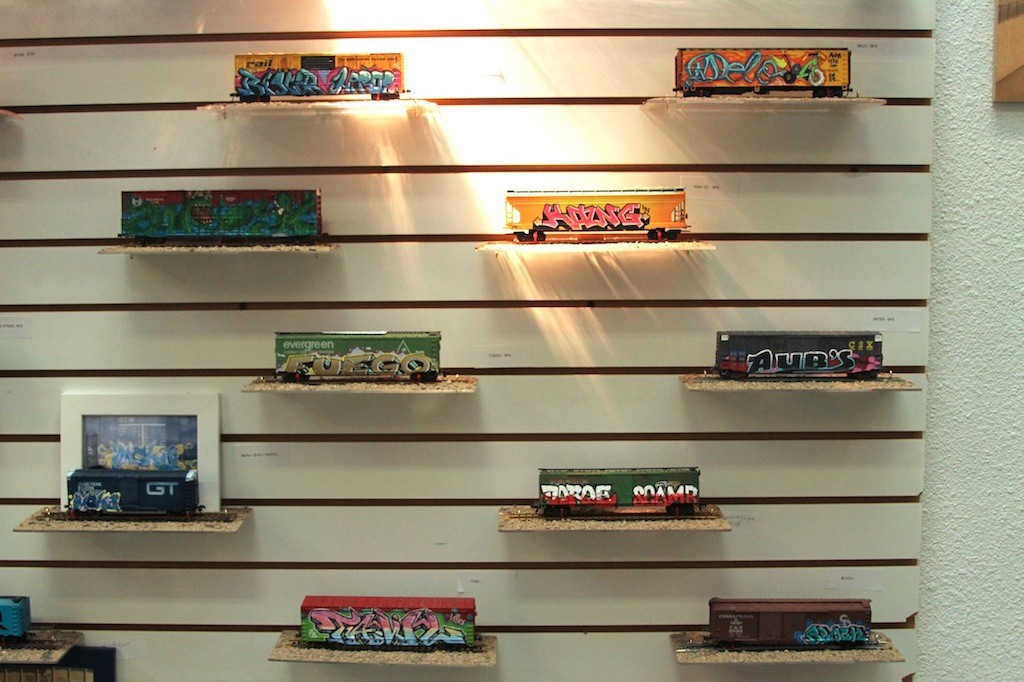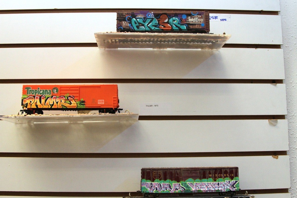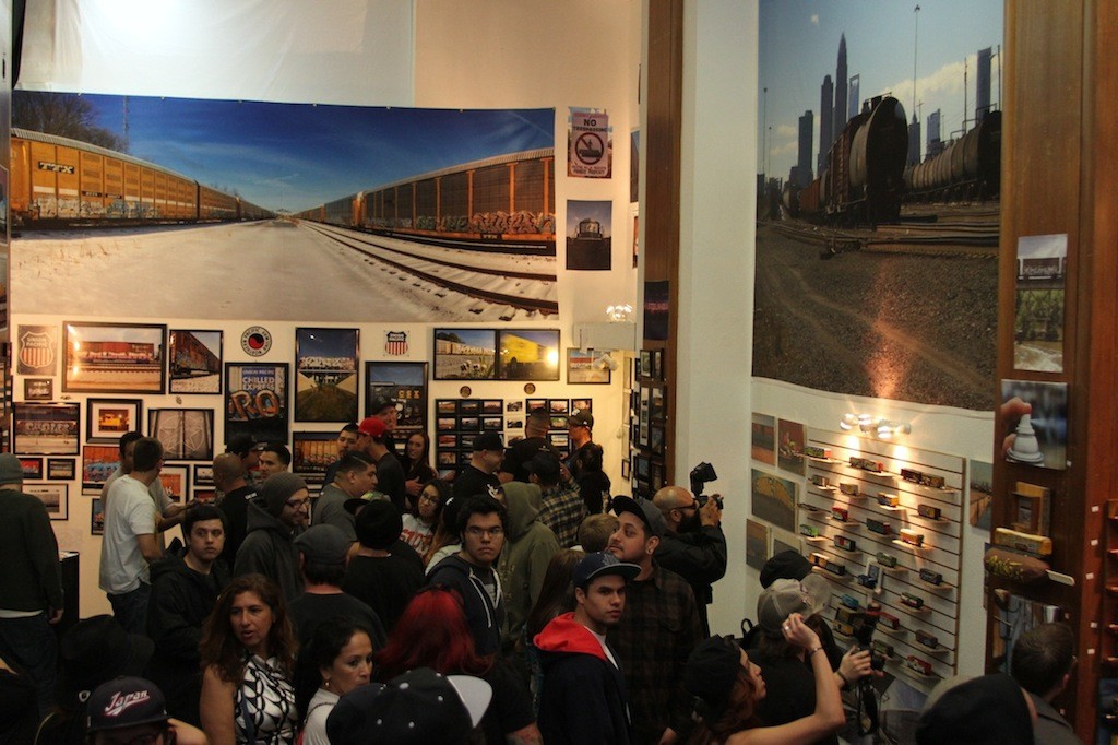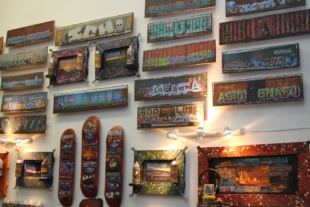 Here’s another flashback for all you art fans. Today we look at the 3rd annual “Steel Giants” Group Freight Train Art Exhibit held at the GCS clothing store in Pomona March 8th, 2014. This is arguably GCS’s Pomona most popular art show. Tons of great art and art fans flood the Con Safos gallery for this show every time they host it. This year’s photographic participants include Eric BMW, True2Death, Bob Ross, REVISE_D, Railside Rebellon, Bob the Bencher, Reefer Sutherland and DCAN. Canvas art by The Savageland, Freight Bandit and Deuce Seven 27.