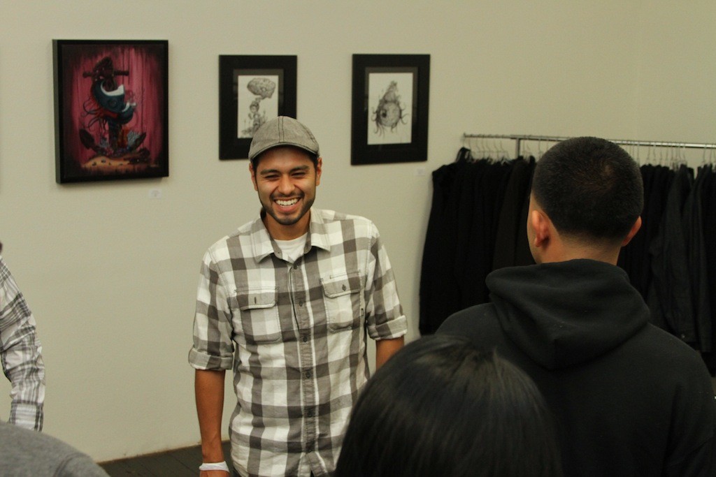 Today we look at the night GCS clothing store came back from the dead and returned to Downtown Santa Ana. NOV 1st, 2014, in conjunction with the first saturday art walk, GCS opened it’s new doors to the world and hosted the show “Return to Tell the Tale”, a solo art show by Ivan “3rdi” Vega. How fitting it was to have this great artist commemorate our re-grand opening, we have had the honor of showing this guy for a few years now and we had to have him return to GCS and bless the new space and get us going on the right foot.