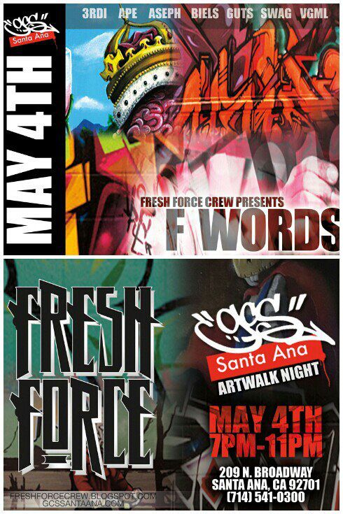 May 4th, 2013. GCS was proud to host “F Words” art show presented by Fresh Force. For those of you that are not familiar with FF, these guys have been part of our gallery shows for quite some time now. Graff, photography, sculpture, illustration and fine art painting, these guys can do it all. Members include 3rdi, APE, Aseph, BIELS, HURL, GUTS, SWAG and VGML. Look out for more from these cats.