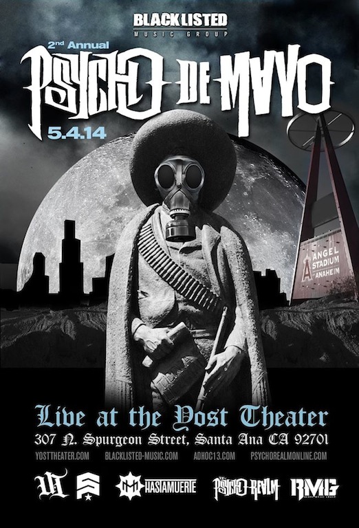 May 4, 2014. The 2nd annual Psycho De Mayo went down at The Yost Theater in DownTown Santa Ana. When you put Psycho Realm, DTSA and the cinco de mayo weekend together, the show was bound to sell out and the venue was sure to get packed. The other headliners backing up Sick Jacken, Cynic, and Dj FM were Tijuana No!, Sean Price and DJ Muggs. Evidence and Murs also jumped on stage to treat the crowd to something a little special. Big ups Blacklisted Music Group for another great show.