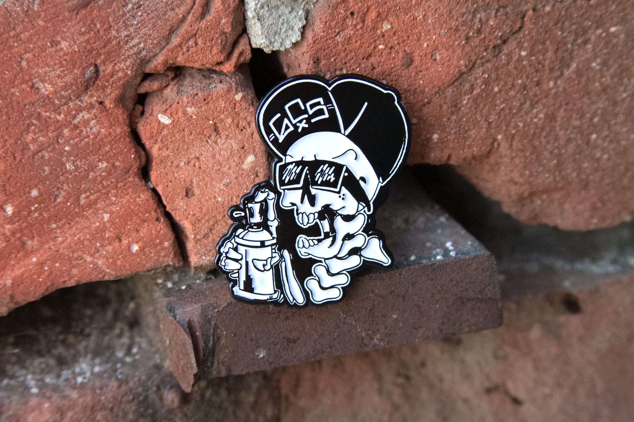 introducing the latest addition to the GCS catalog, the SKULL PIN. 1 1/2 inches tall, black and white soft enamel pin with two prongs. Art by ZANE. Add this to your collection here at the shop or on www.gcssantaana.com, look for it under the Pins & Toys & Stickers & More section.