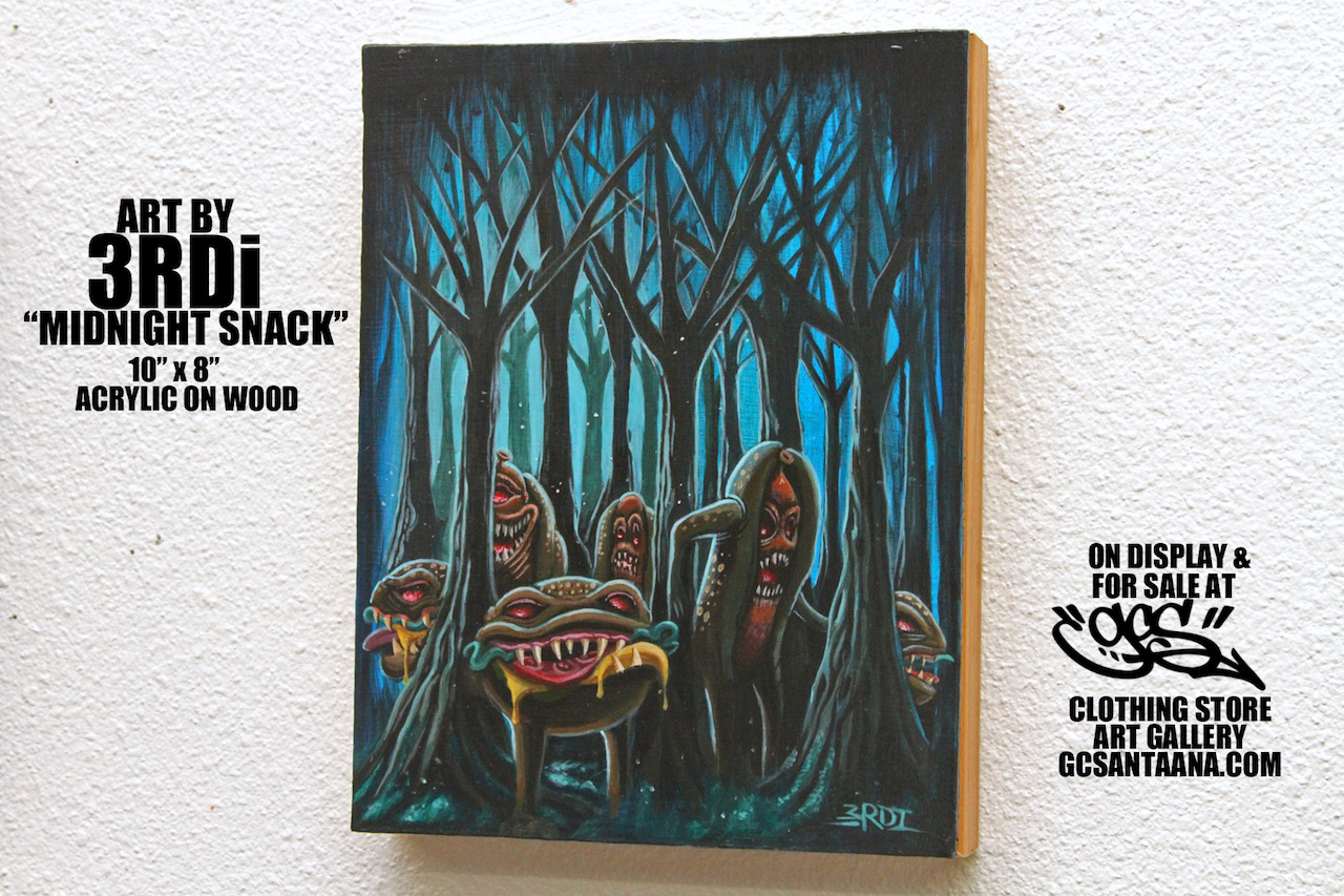 Here is a up-dated version of the flyer for the OCT 24th solo art show with the amazing MADE RINDU . The opening goes from 6 pm to 10pm and of course its free and all ages. Bring the whole family, music, refreshments and live painting going down here in the gallery. Tons of new pieces for sale at the show. We’ll see you then.