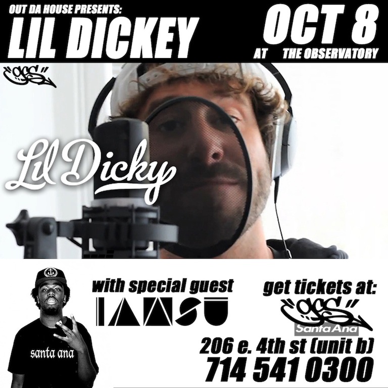 Events, News Lil Dicky at The Observatory OCT 8 September 25, 2015 Killergreen Leave a comment GCS Clothing Store in Santa Ana is selling tickets to Lil Dicky’s OCT 8th show at The Observatory. With special guest IAMSU. All ages.