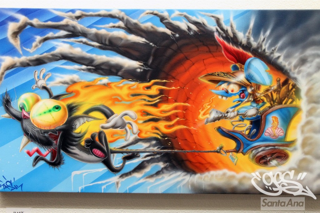 OCT 3rd, 2015- The Orange Crush’d Art Show came to The GCS Clothing Store and Art Gallery for the October Art Walk, 2015. XPLODE CBS curated this show that brought out most of the biggest hitters in OC graff. This was the biggest night at the new GCS Santa Ana location as hundreds of visitors, artists and art buyers and supporters came through to witness the show for themselves. Here is a photo run-down of the night. The show will hang until OCT 23rd, so come by and check it out while you can.