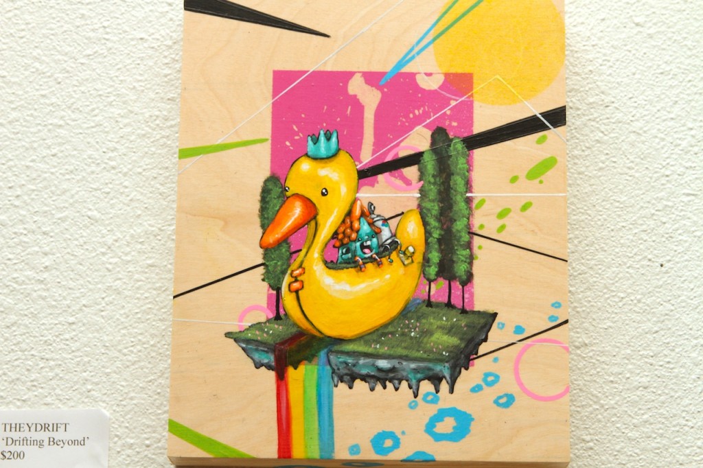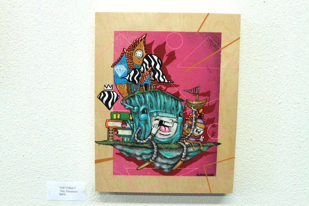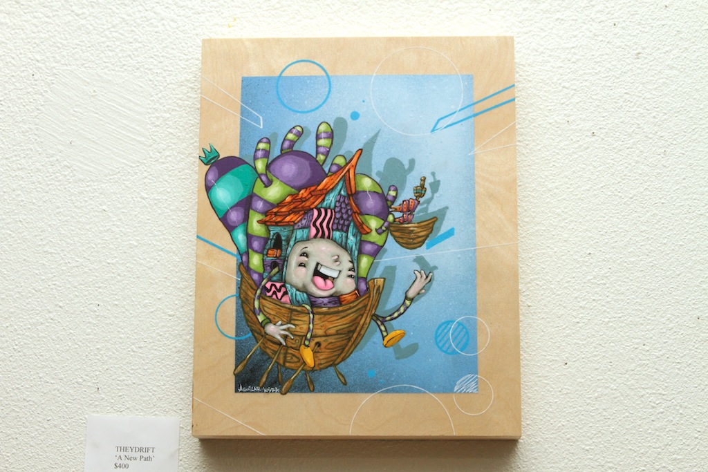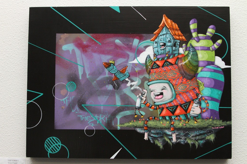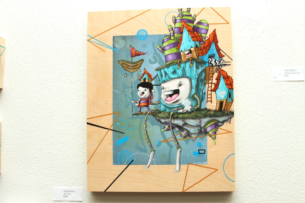 June 6th, 2015- KSRA and Carlos Aguilar a.k.a. THEYDRIFT came all the way down from Washington to be our featured artists in our gallery for the JUNE art walk. GCS was honored to host these amazingly creative minds. Here are the original pieces that were shown in our gallery for the show. In addition to the gallery pieces, they had a chance to rock a piece in front of our shop and it has quickly become a welcomed addition to the neighborhood. These pieces will hang until the end of the month, so don’t hesitate to come in and see them for yourself.