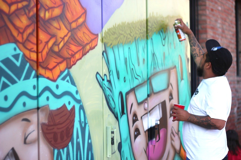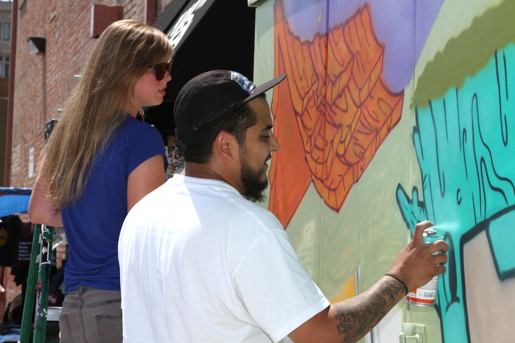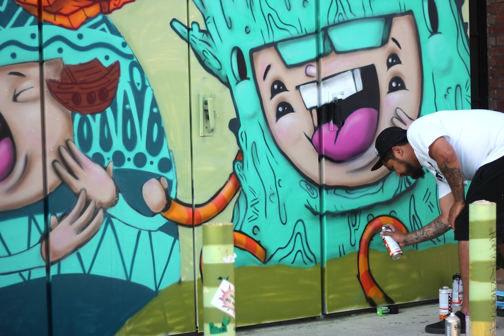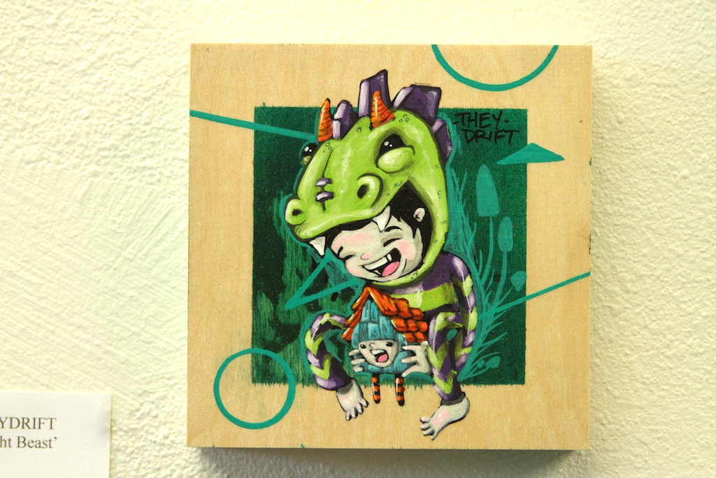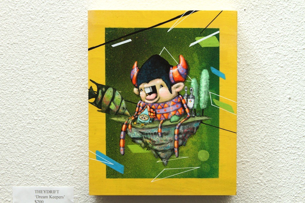 June 6th, 2015- KSRA and Carlos Aguilar a.k.a. THEYDRIFT came all the way down from Washington to be our featured artists in our gallery for the JUNE art walk. GCS was honored to host these amazingly creative minds. Here are the original pieces that were shown in our gallery for the show. In addition to the gallery pieces, they had a chance to rock a piece in front of our shop and it has quickly become a welcomed addition to the neighborhood. These pieces will hang until the end of the month, so don’t hesitate to come in and see them for yourself.